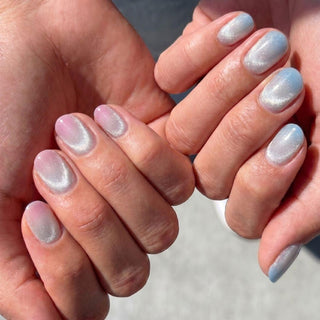 Submerge the nails in hot water for around 8 seconds, remove and pat dry with a clean lint-free towel, then press them firmly against a flat surface until your desired curvature is reached. The heat makes the gel pliable enough to mold to your nail bed curvature. Hold in place for a few seconds until they cool and set.